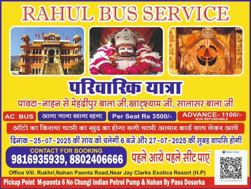 ЁЯЪН Rahul Bus Service тАУ рдкрд╛рд░рд┐рд╡рд╛рд░рд┐рдХ рдЦрд╛рдЯреВ рд╢реНрдпрд╛рдо рдЬреА рдПрд╡рдВ рд╕рд╛рд▓рд╛рд╕рд░ рдзрд╛рдо рдпрд╛рддреНрд░рд╛┬а2025November 17, 2025